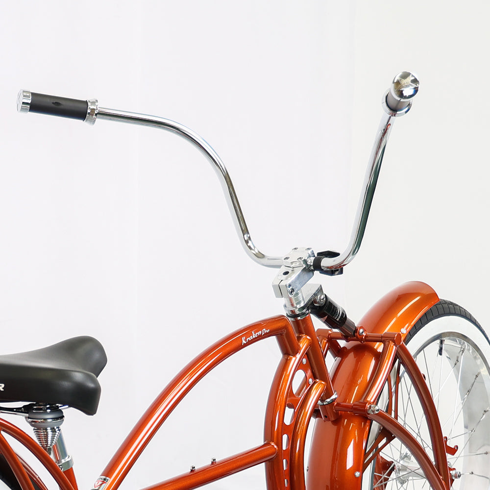 The Kraken Pro 26" Stretch Chopper Bike is perfect for those seeking a unique design paired with outstanding performance. Whether you're cruising on a leisurely weekend ride or commuting to work, this bike ensures a smooth, comfortable, and dependable experience.